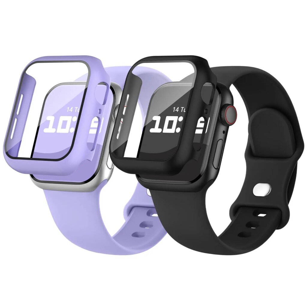 Glass+Cover+Strap For Apple Watch band 44mm 41mm 45mm 40mm 38mm 42mm Silicone bracelet iWatch serises 9 8 3 4 5 6 SE 7 watchbands