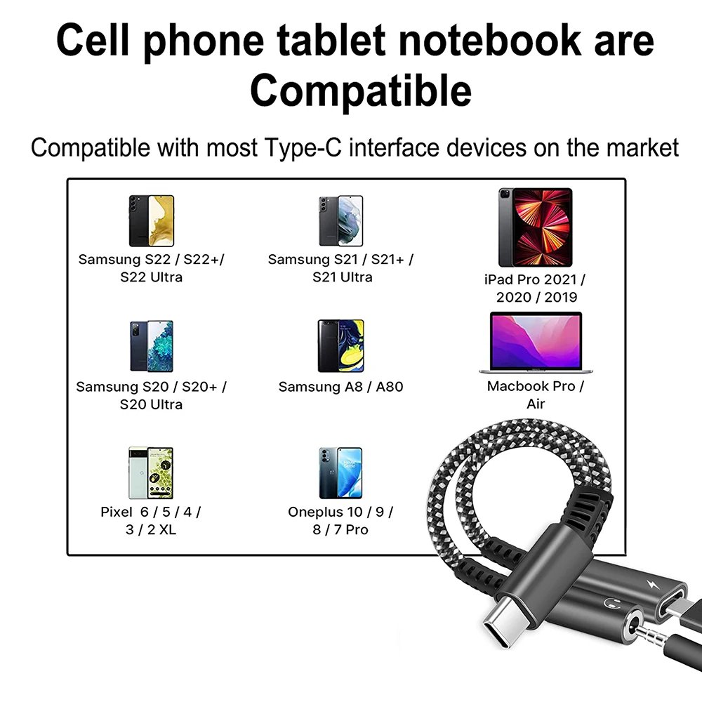 1pcs 2pcs USB Type C to 3.5mm Headphone and Charger Adapter 2-in-1 USB C to AUX Audio Jack Dongle Charger Cable For Fast Samsung