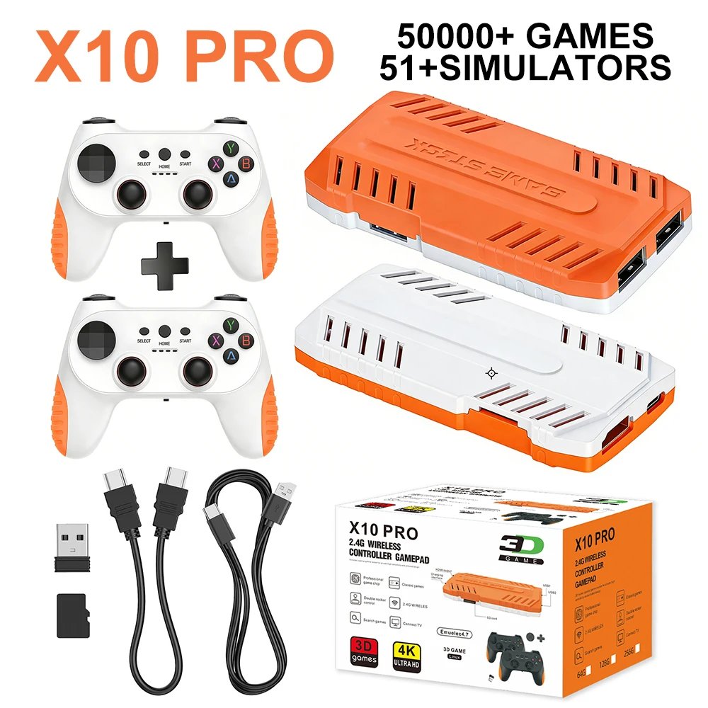 2026 New 128G X10 PRO GameStick 4K Video Game Console 3D Games Built-In 50K Games 40+ Emulators Retro Games Dual 2.4G Controller