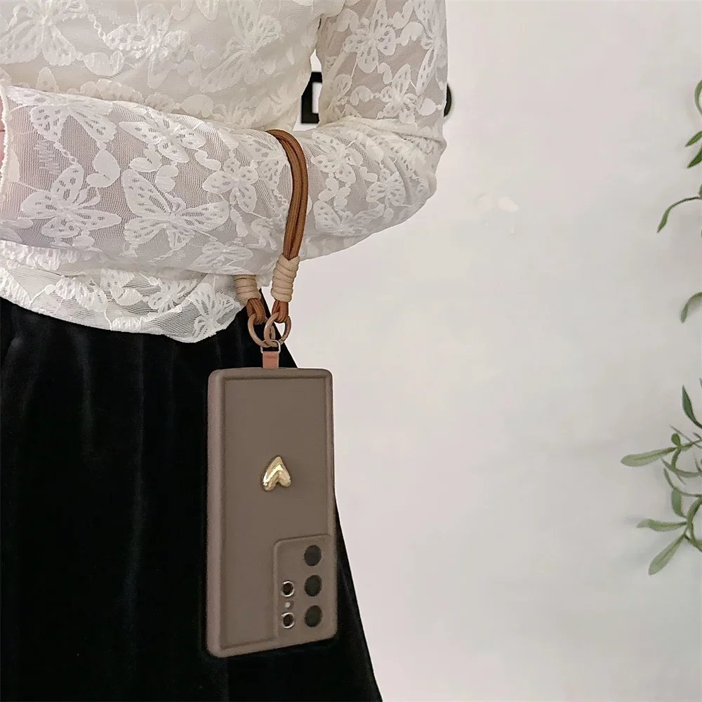 3D Gold Heart Love Wrist Strap Case For Samsung Galaxy S25 Ultra S23 S22 Plus S24 S21 FE Note 20 A56 A55 A36 A35 A26 A16 A15 5G