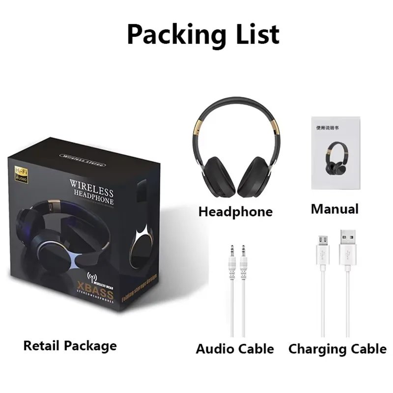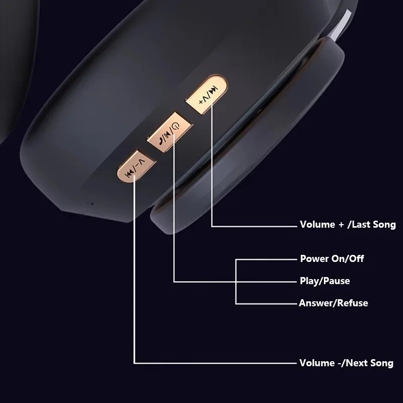 Foldable Wireless Bluetooth Headphones HiFi Deep Bass Noise Cancelling Earphones with HD Microphone PU Leather Earmuffs