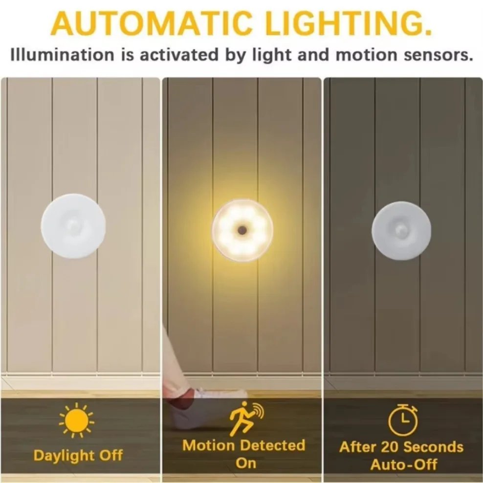 LED Motion Sensor Light USB Mini Night Lights Round Chargeable Lamp For Bedroom Kitchen Stair Hallway Wardrobe Lighting Cupboard