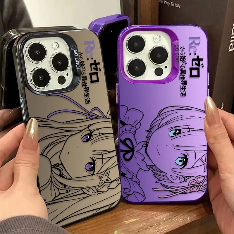 Lovely Cartoon Rem Emilia Plating Phone Case for Samsung Galaxy S25 Edge S24 S23 S22 S21 S20 Ultra Plus FE A56 A36 A26 Cover