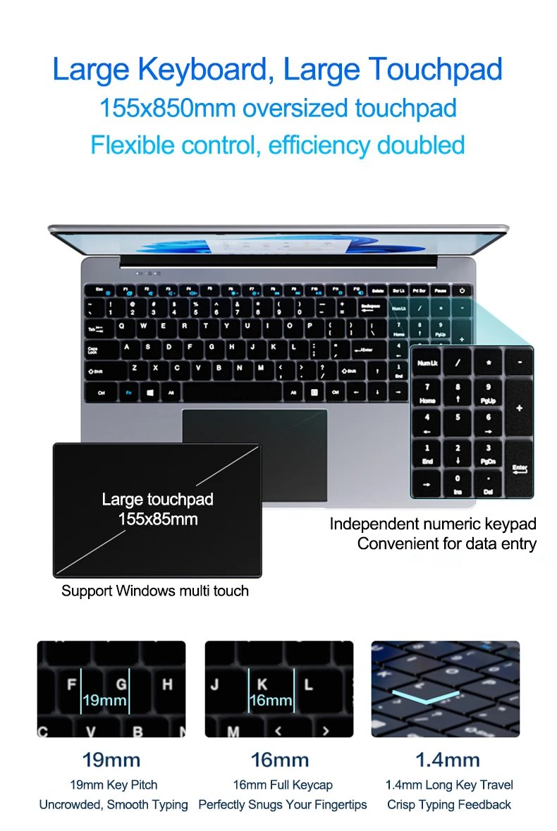New 15.6″ Portable Laptop Intel 6500Y 32GB RAM 2TB SSD Windows 11 5000mAh Backlit Keyboard Fingerprint Office Gaming Notebook PC