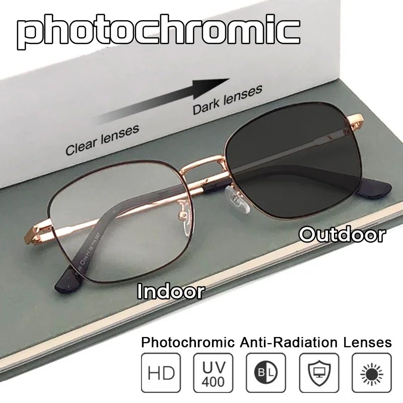 Photochromic Sunglasses Brand Vintage Sun Glasses Anti Blue Light Women Men Square Glasses Frame Outdoors Sun Chameleon UV400