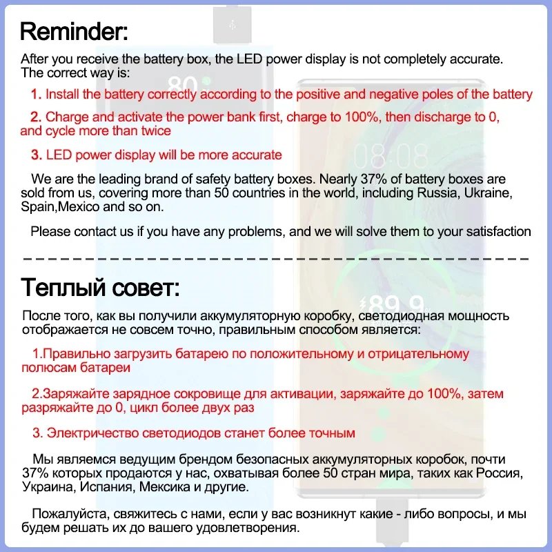 After you receive the battery box, the LED power display is not completely accurate. The correct way is