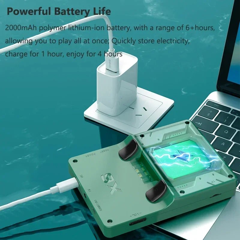 3. Long battery life: This console is equipped with a real 2000mAh polymer lithium-ion battery that can provide more than 6 hours of gaming time on a single charge. The battery charges quickly and can be fully charged in just 1 hour, allowing you to enjoy up to 4 hours of gaming fun.