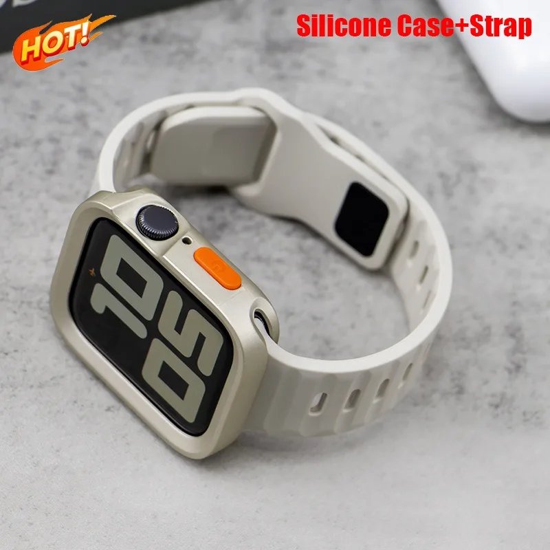 Silicone Case+Strap For Apple Watch Series 11 9 45mm Band 8 7 41mm SE3 6 5 4 44mm 40mm Rubber correa Strap iwatch Ultra 3 49mm