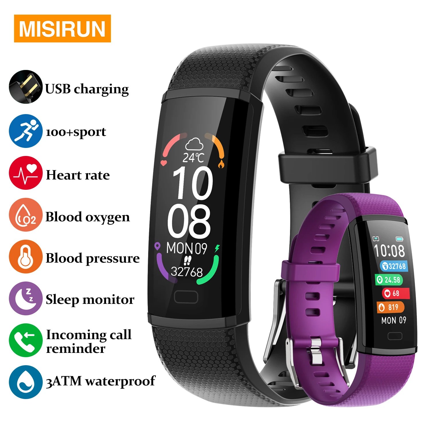 Health management: heart rate, oxygen saturation, blood pressure, sleep tracking