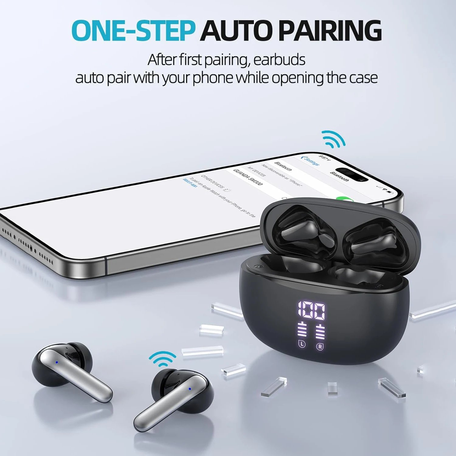 Each wireless earbuds offers up to 6 hours of listening time on a single charge, allowing you to enjoy a total of 40 hours of music time by taking turns with the charging case. Bluetooth headphones feature a dual LED digital display that makes you can easily monitor the battery level, ensuring timely charging.