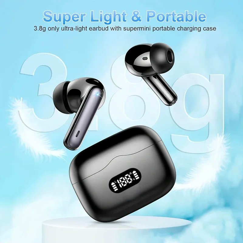 UYUXIO Wireless Earphone 40dB Noise Cancelling Bluetooth 5.3 Headphone ENC with LED Display HD TWS Earbuds Transparency Mode